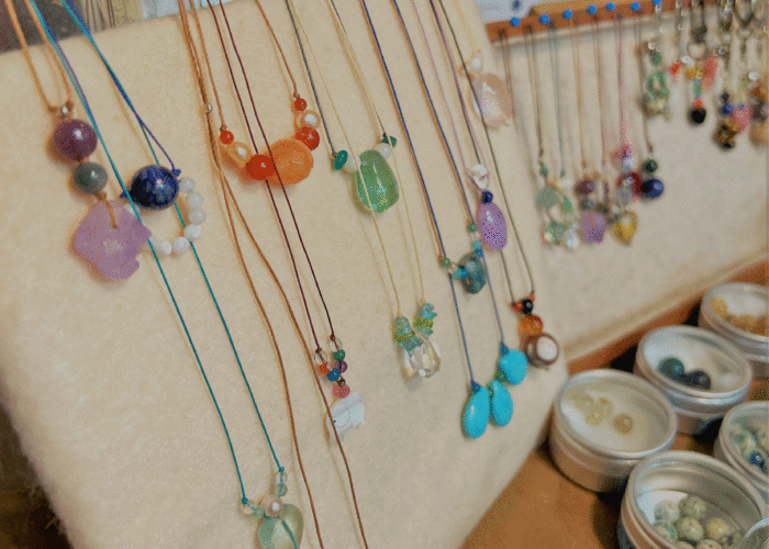 ジュエリーデザイナーが手掛ける天然石とシルバーアクセサリーのお店。店の奥にあるアトリエでオリジナルジュエリーの体験製作ができる。パワーストーンとして人気の天然石は目移りす…