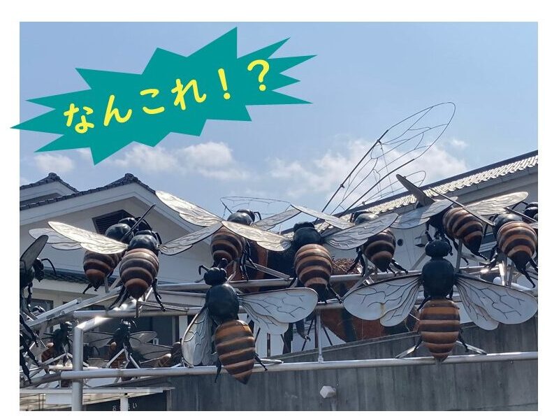 山田養蜂場の蜂蜜を使ったお菓子や化粧品等が購入できるお店です。その外観は巨大なミツバチがさらに巨大なスズメバチと戦う様子のオブジェが目を引きます。熱殺蜂球という、天敵のスズメバチを取り囲んで熱で倒す様子だそうです。ミツバチの偉大さと畏怖を感じることができます。店内にはカフェスペースもあり、ジェラート等を楽しむことができますので、週末のおでかけ先にぴったりです。