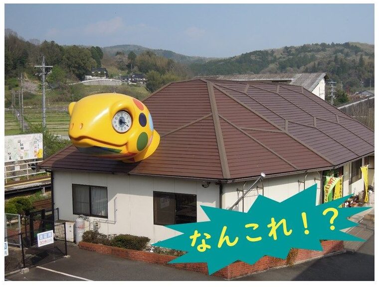ここは亀甲駅。その名の通り、亀の形をした駅です。JR津山線沿線の駅であり、駅舎から頭が突き出し、駅舎の屋根は甲羅のような形と、外観が亀のようになっています。そのほかにも亀の置物や、駅舎の中には本物のカメまで見ることができ、まさに亀づくし。津山線に乗車して車窓から眺めるも良し、降車して写真を撮るのも良しのスポットです。