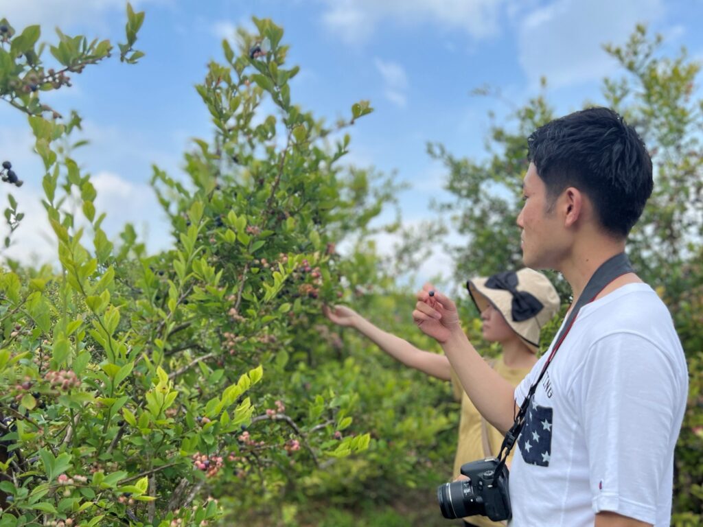 樹齢40年を超える大株のブルーベリーの木々が所狭しと育っています。暑さ対策をして、涼しい午前中の摘み取りがおすすめだそう。タイミングが良ければ季節の作物も味わえるかも!?