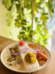 3種類から選べる本日のカレー。選び迷う人には2種のあいがけ、3種盛りも選べるカレー好きには『たまらん』お店です。店内にはスパイシーで香ばしい食欲そそる香りが立ち込めています。スイーツのレーズンバターサンドも人気です。