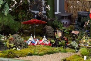 あちこちに生け花の展示もされています。