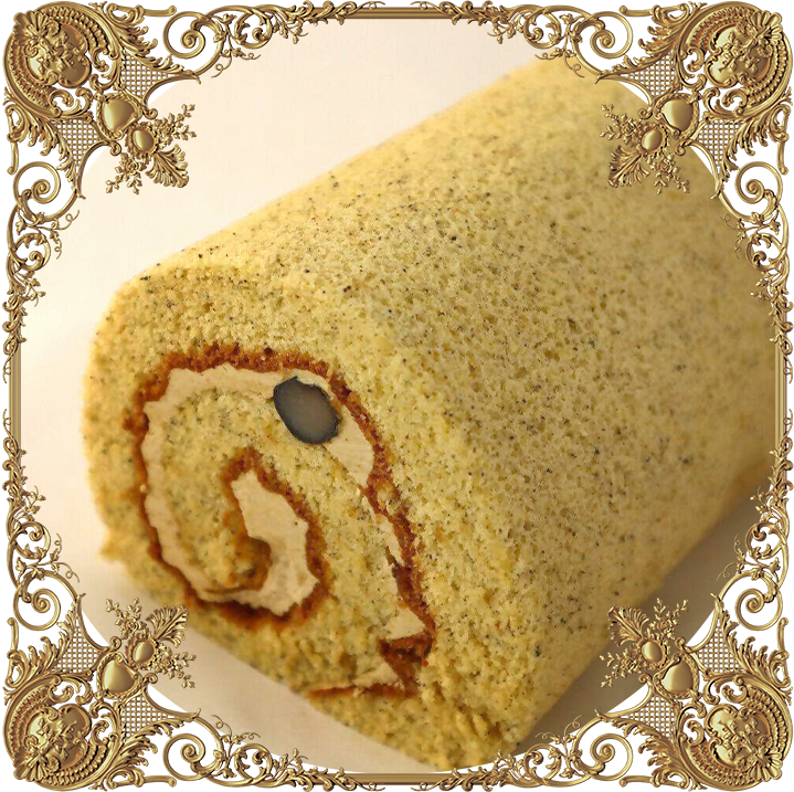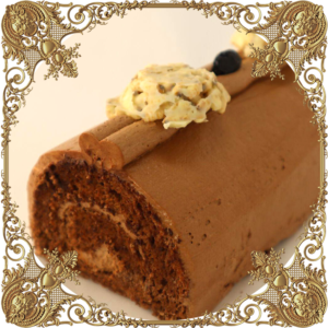 ガナッシュクリームをロールした、風味豊かなチョコレートケーキ。