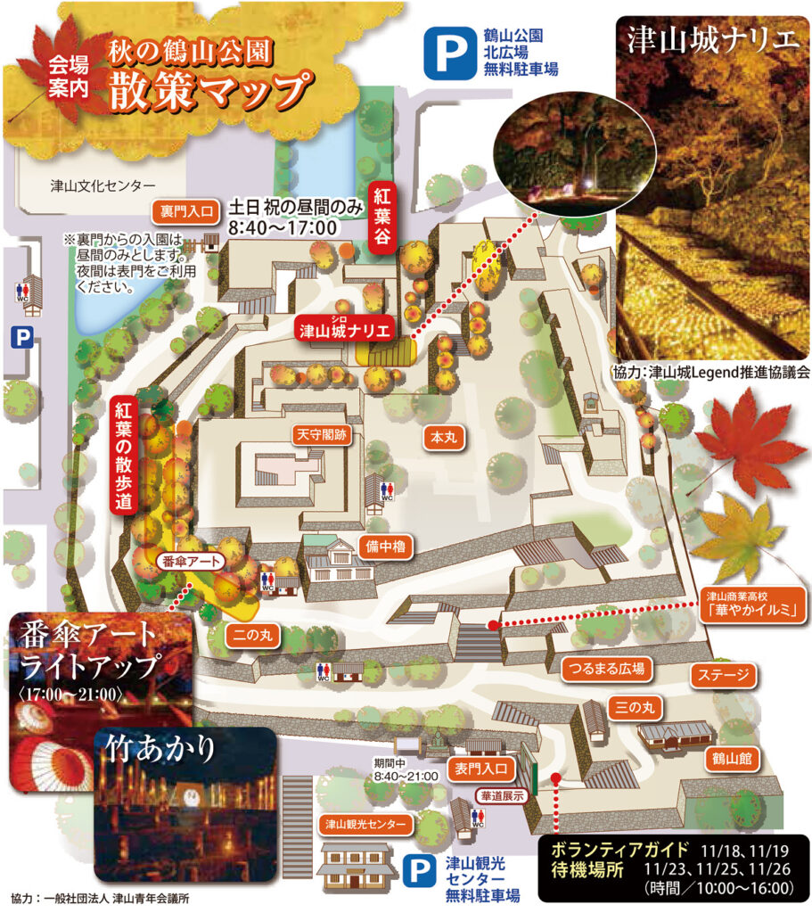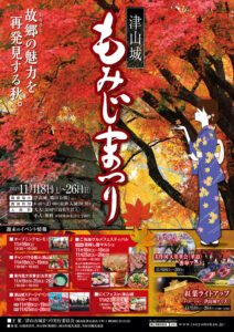 桜の名所として知られる津山城。秋には紅葉も見ものです。毎年人気の番傘アートやライトアップのほかに、アクティビティイベント『チャンバラ合戦in津山城』が開催されます。また、会期中盤の祝日23日には肉文化の津山らしいイベント『にくフェスin津山城』も。つやま和牛をまるまる一頭使い切るようさまざまな部位を使用したメニューがズラリと並びます。さらに、津山と言えばホルモンうどん。同日開かれる、BIG津山ホルモンうどん大会ではホルモンうどん、そずり鍋、干し肉など津山を代表する牛肉料理が各100食限定で振舞われます。肉三昧の“秋”をご堪能ください。