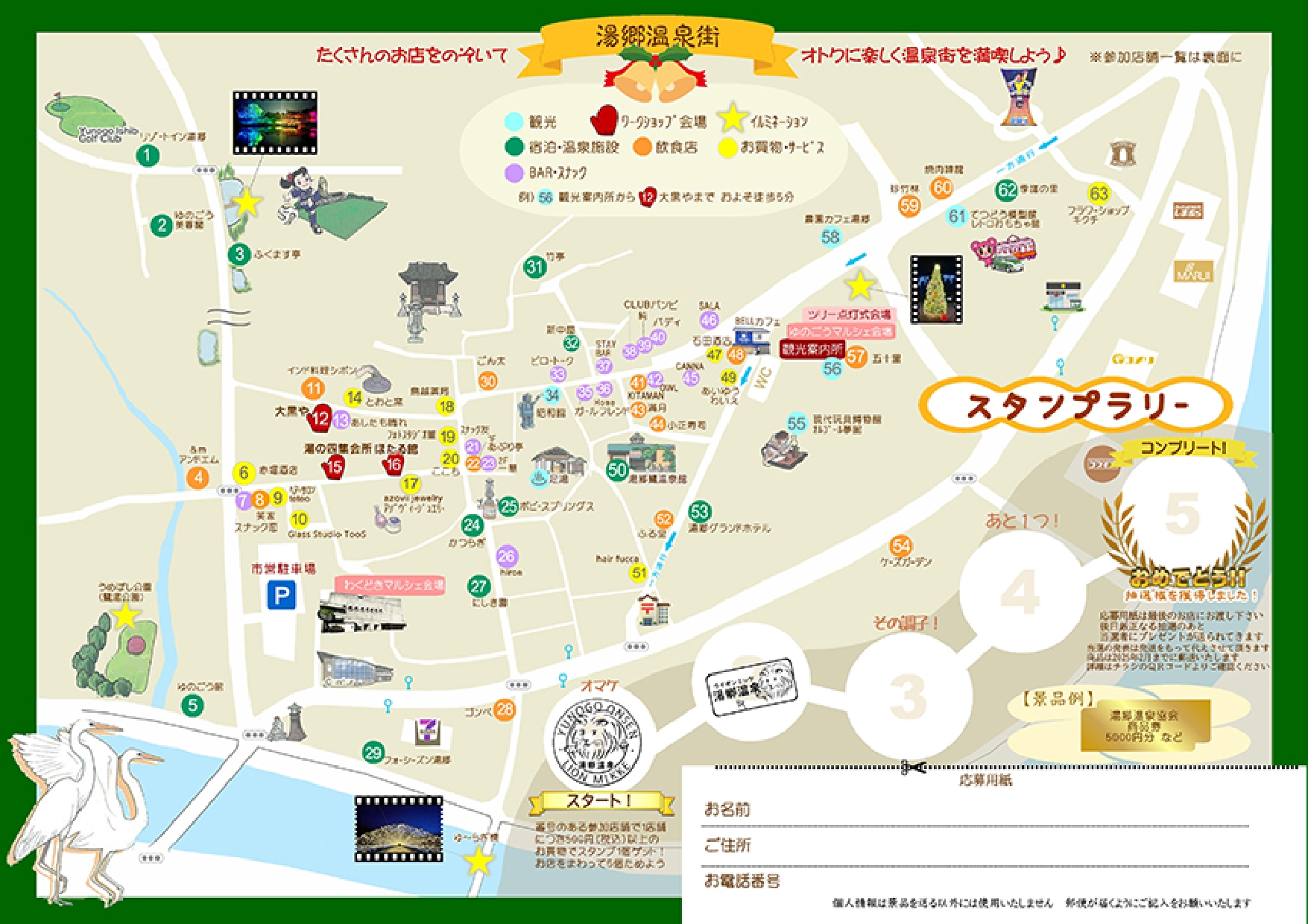 スタンプを5個集めると、商品券などのプレゼントが当たる抽選へ応募できます。