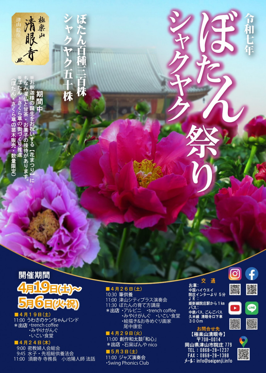 【4/19-5/6】清眼寺 ぼたんシャクヤク祭り(津山市)