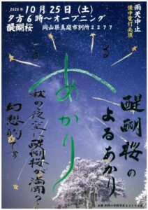 2025.10.22 【10/25】醍醐桜のよるあかり 開催期間 2025年10月25日(土) 18:00~20:00 開催場所 醍醐桜 (岡山県真庭市別所2277) 詳しくはこちら 前の記事へ お知らせ一覧へ 次の記事へ