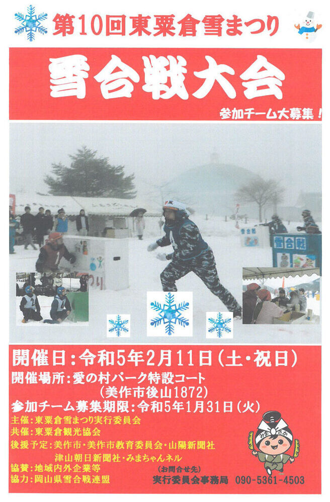 【2/11】東粟倉雪まつり 雪合戦大会(美作市)