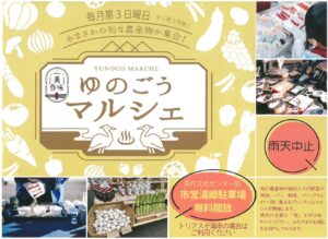 「ゆのごうマルシェ」が、毎月第3日曜日(1月、2月を除く)の午前中に、湯郷温泉街で開催されます。