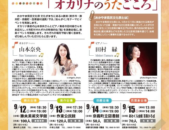 【9/12・13・14・15】山本奈央&田村緑コンサート(勝英地区)【整理券配布8/1~】