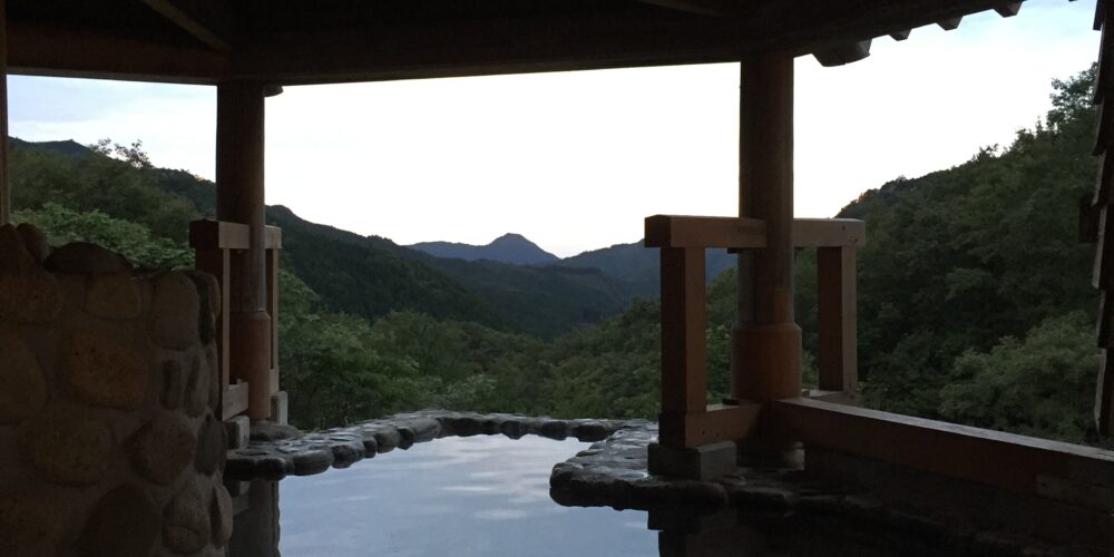 標高700Mの露天風呂(源泉掛け流し)から見下ろす山の風景は時間と日常を忘れさせてくれます。