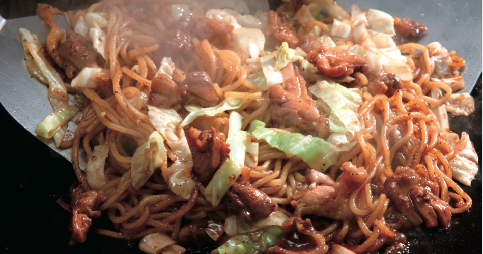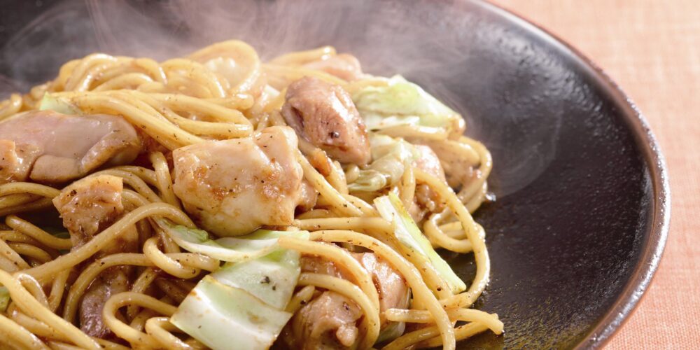 もちもち麺に鶏肉と高原キャベツの焼そば。味噌ベースの甘辛いタレはクセになります。