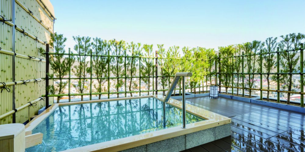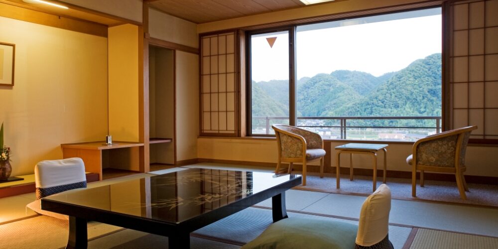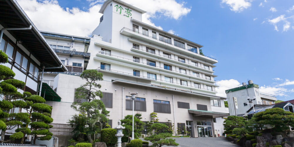 ”やさしさの宿竹亭”は、湯郷温泉の高台に位置し、風の館7階の展望浴場からは湯郷の四季を彩る山々が見渡せます。