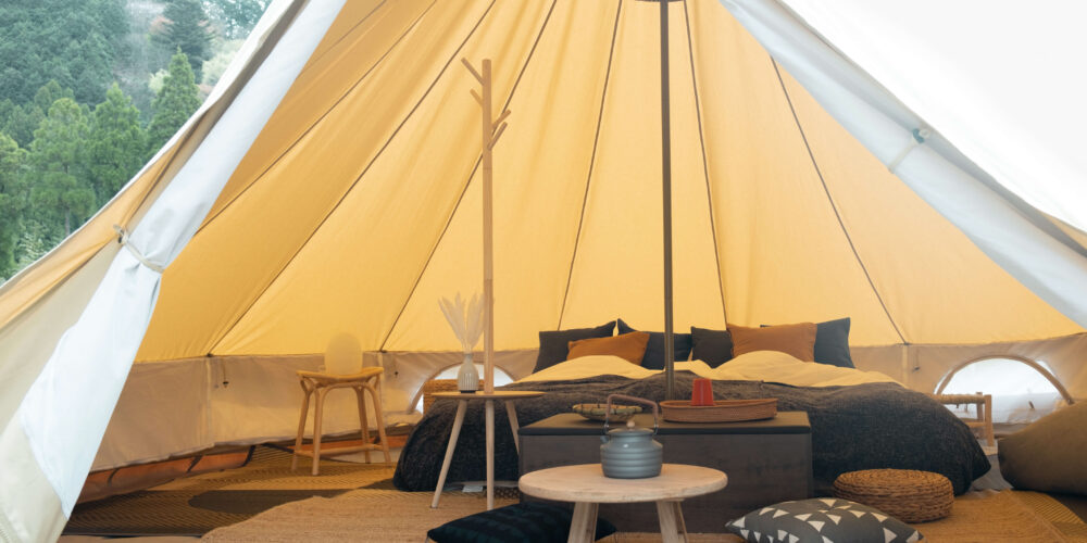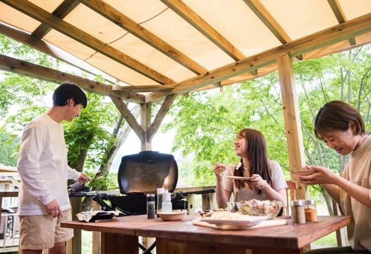 阿波森林公園にある渓流沿いのグランピング施設。日本の原風景が残る里山で、丁寧な時間を過ごすことができます。