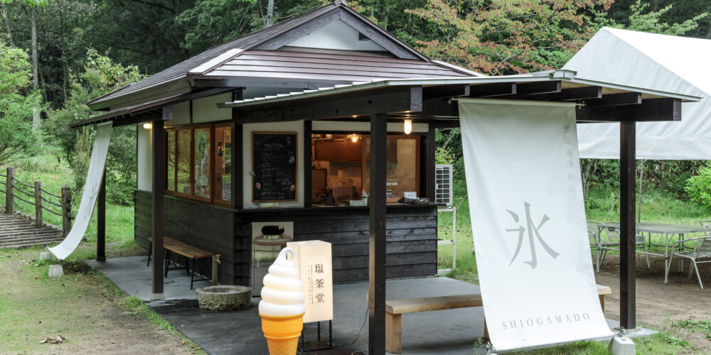 塩釜冷泉の水をたっぷりと使用した味わい深い塩釜冷泉コーヒーやかき氷、蒜山ジャージー牛乳を使用した季節ごとのソフトクリームなどが楽します。