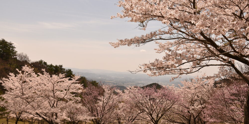 声ヶ乢は、応戸仙への登山口にあり、標高530mに位置し、勝北の街並みが一望できます。春にはソメイヨシノや八重桜、山桜など1200本の桜が、初夏には約2000本のアジサイが咲き、秋にかけては眼下に雲海が見られます。