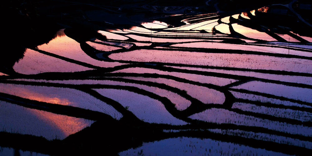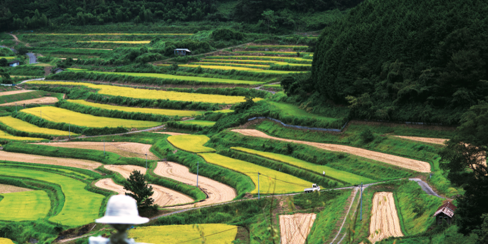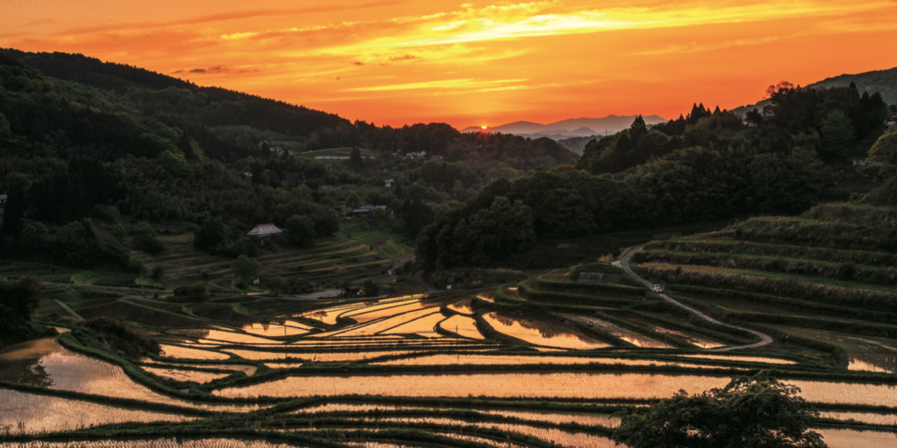 標高400mの山間地に、谷全体を囲むように360度すり鉢状に約800枚の棚田が広がります。「日本の棚田百選」にも選ばれており、特に初夏から秋にかけての眺めが素晴らしく、フォトスポットとしても人気です。