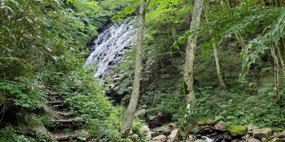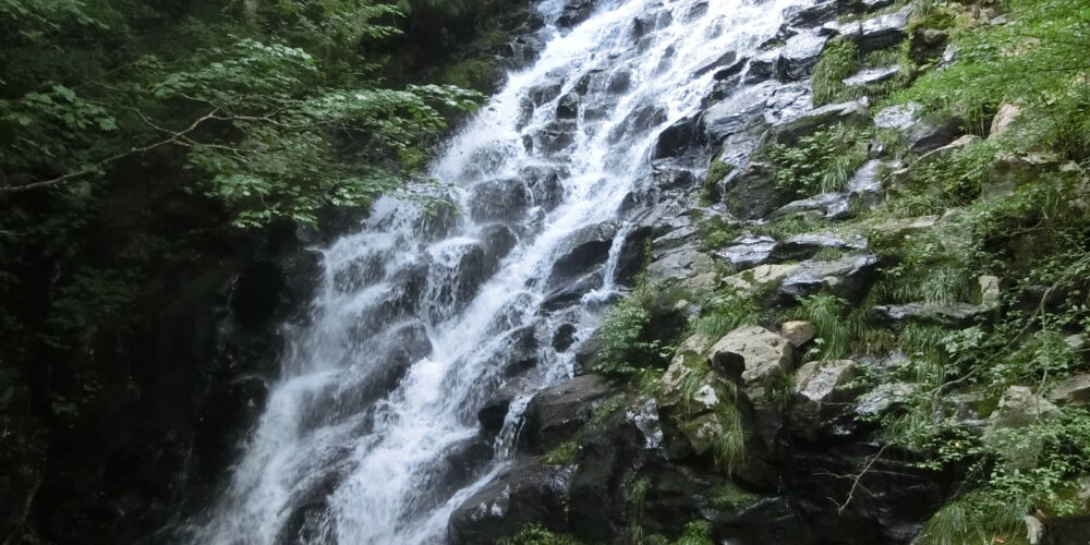 黒岩高原一帯の水を集めて落合渓谷に流れ落ちる滝。50メートルの高さから流れ落ちる様子が、白い布をさらしているように見えることから布滝(のんたき)という名前が付きました。滝つぼの周囲にはヤマボウシやカエデが多く、新緑と紅葉の季節には美しさが際立ちます。