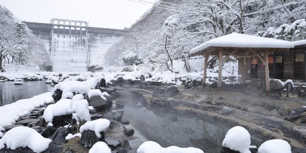 四方を山々に囲まれた、湯原ダムの下流、旭川沿いに広がる温泉地。全国露天風呂番付で西の横綱に選ばれた露天風呂「砂湯」は、湯原温泉のシンボルです。