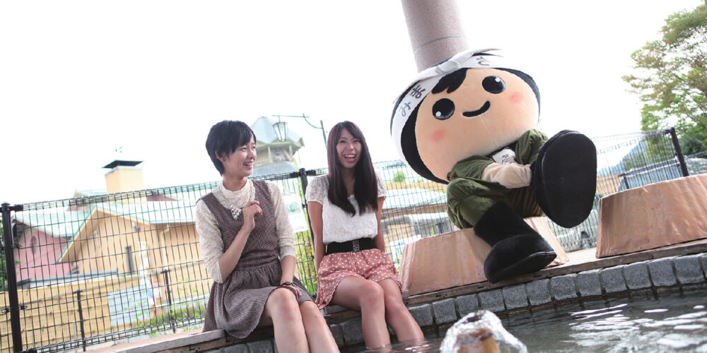 美作地方の巨人伝説「三歩(さんぶ)太郎」の足型をモチーフにした無料の足湯。散策の疲れを癒す絶好のスポットです。